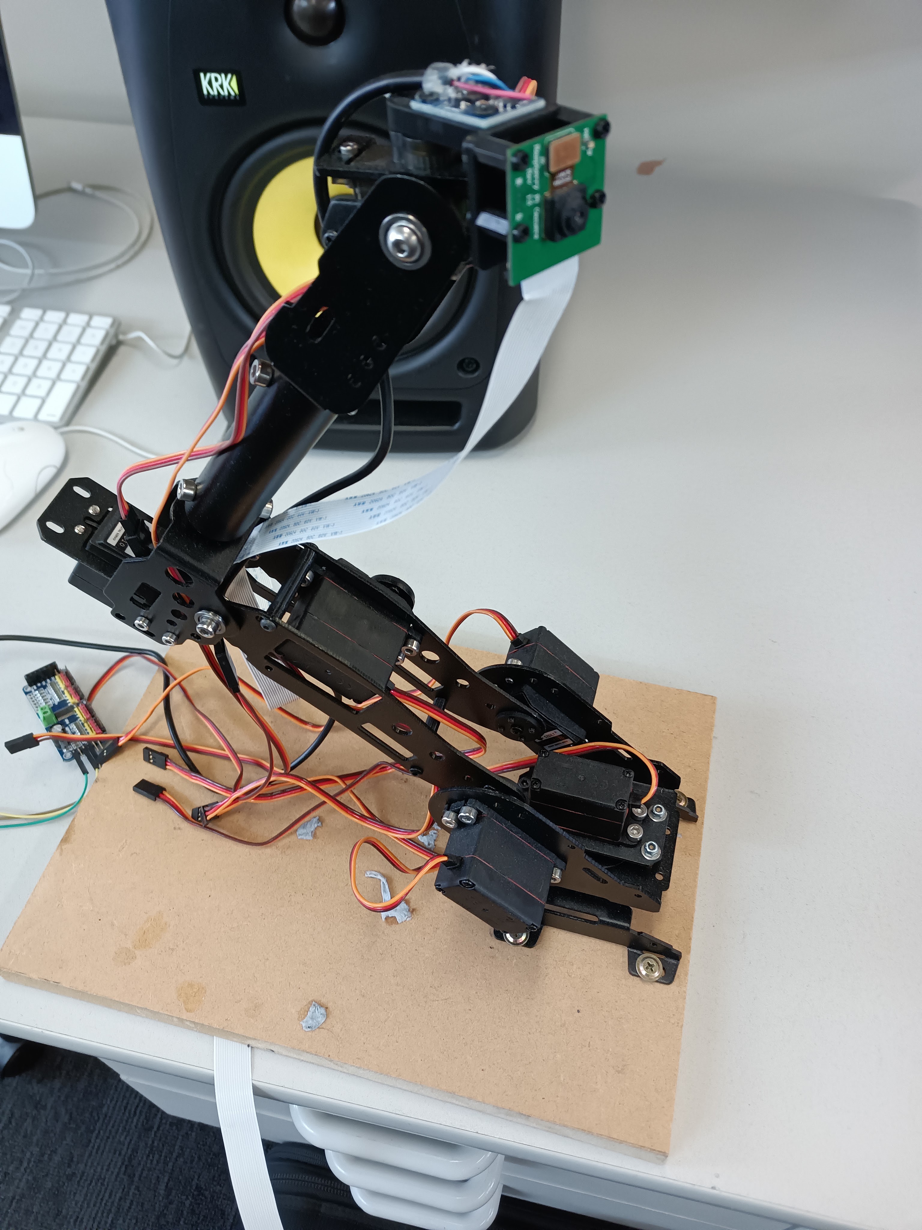 As an initial proof of concept I threw together a cheap servo based kit. Running OpenCV on a Raspberry Pi (with an additional boost from a Coral tpu) I was able to get it tracking faces quite reliably. Unfortunately an arm of this size ( roughly 300mm tall) was never going to satisfy what I wanted from the presence of the piece. To succeed in adding weight to the audio I felt the arm would need to meet the audience at eye level, I didn’t want the audience to be looking down on it. Unfortunately scaling the arm up that significantly presents something of a challenge. While there are robot arms large enough available they are intended for heavy industrial use, capable of lifting considerable weight and as such considerably too heavy and expensive for my use. Also I wanted to avoid the aesthetics of an industrial piece of equipment. This lead me to designing and building my own arm.